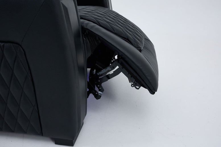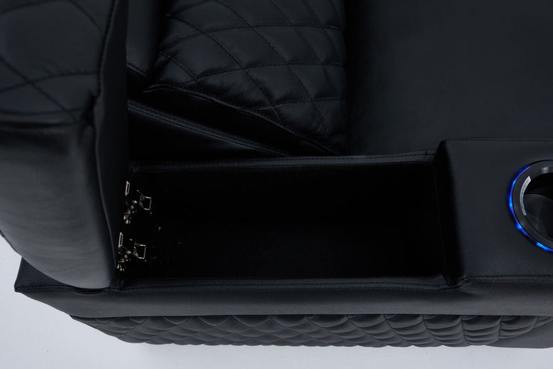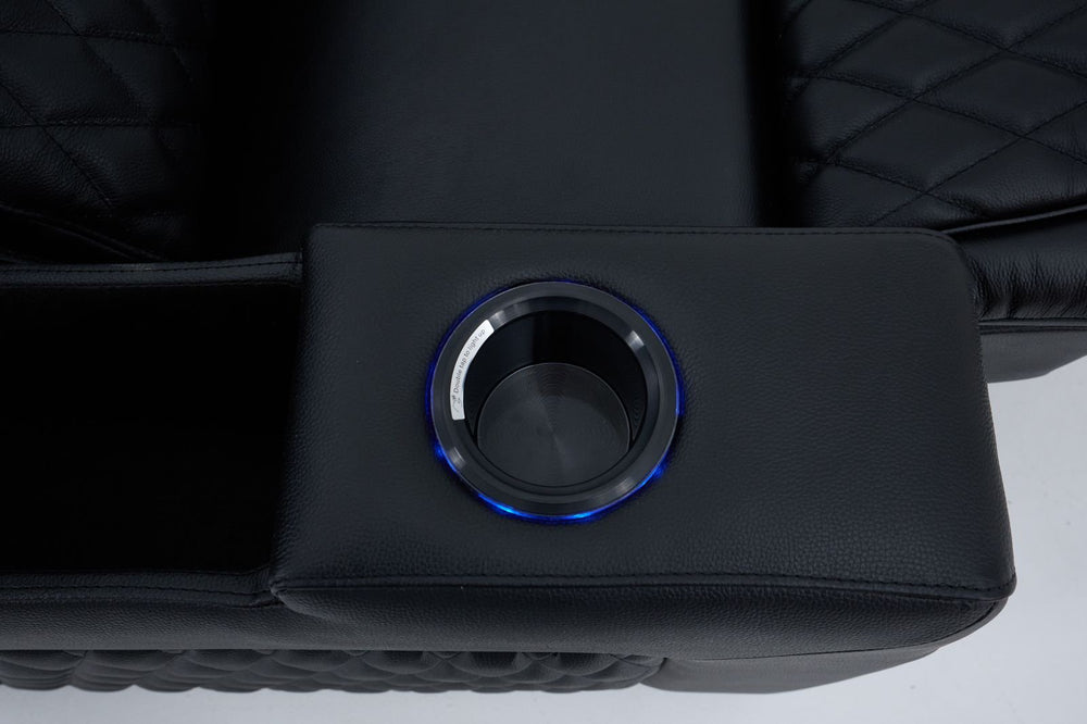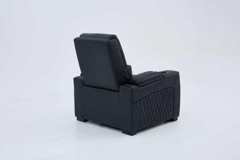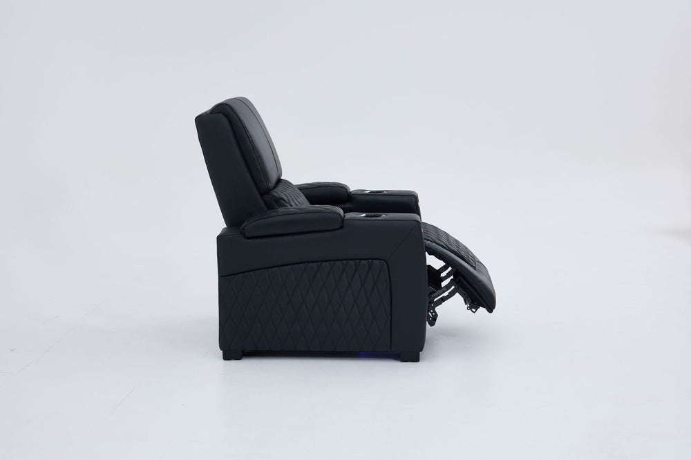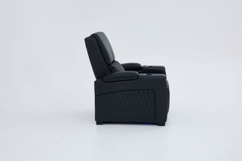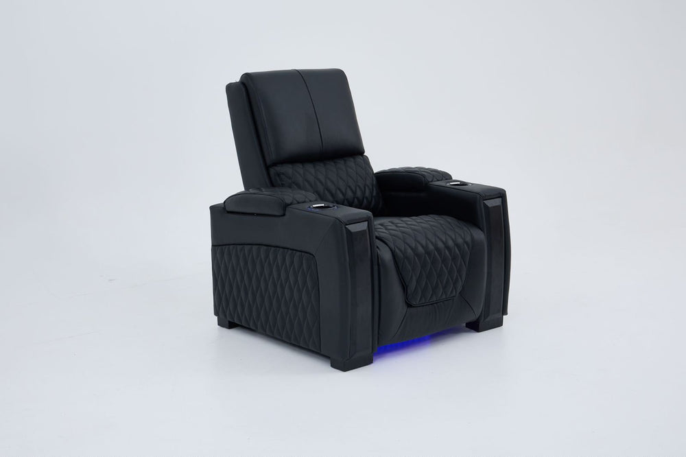Transform your movie nights into a five-star cinematic experience with our top-grade genuine leather electronic home theater recliner. Expertly crafted for comfort, style, and convenience, each seat features plush diamond-stitched upholstery, power reclining mechanisms, and built-in cup holders for a true VIP feel. The sleek, modern design with ambient LED base lighting creates a dramatic and immersive atmosphere in any home theater setting.