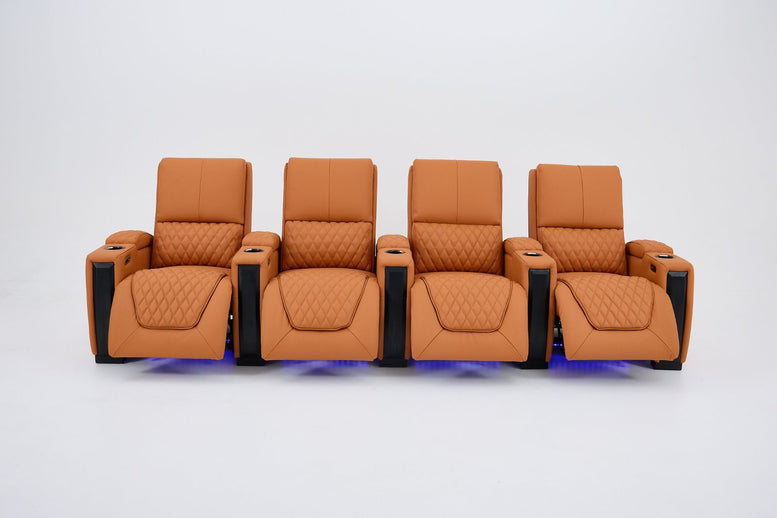 Alexandra Luxury Home Theatre Electric Recliner 4 Seater Orange