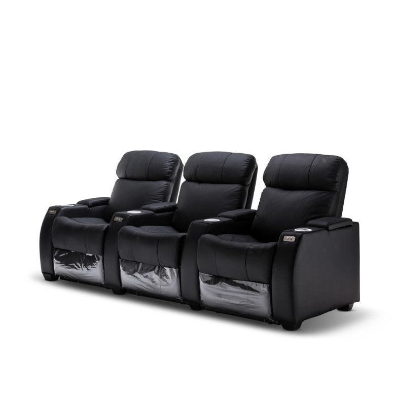 Create the ultimate cinema experience at home with this premium home theatre electric recliner. Designed for serious comfort and style, it features a soft, supportive silhouette upholstered in genuine leather for a luxurious look and feel that’s built to last. The smooth electric reclining function allows you to effortlessly adjust your seating position at the touch of a button, while the plush cushioning and high backrest provide exceptional support for long movie nights or gaming sessions. Integrated cup holders keep your drinks within easy reach, so you can sit back and relax without interruptions.