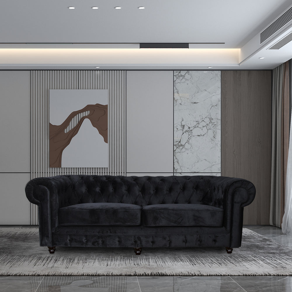 Add timeless elegance and luxurious comfort to your living space with the Cleo Velvet Chesterfield Sofa. Featuring a classic rolled-arm silhouette, deep button tufting, and plush velvet upholstery, this statement...