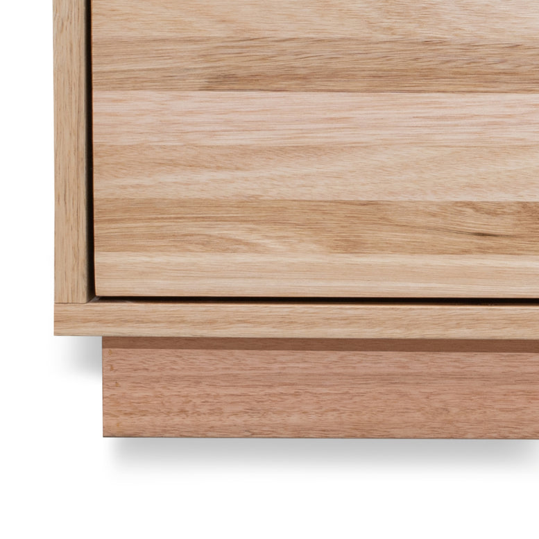 This beautifully crafted 168cm Solid Messmate TV Unit, designed to bring natural warmth and contemporary style to any home. Made from premium messmate solid timber, this entertainment unit showcases the stunning natural grain variations that make every piece unique. The clean lines, modern silhouette and subtle black accent strip create a timeless look that pairs effortlessly with modern, Scandinavian, coastal and Australian contemporary interiors.