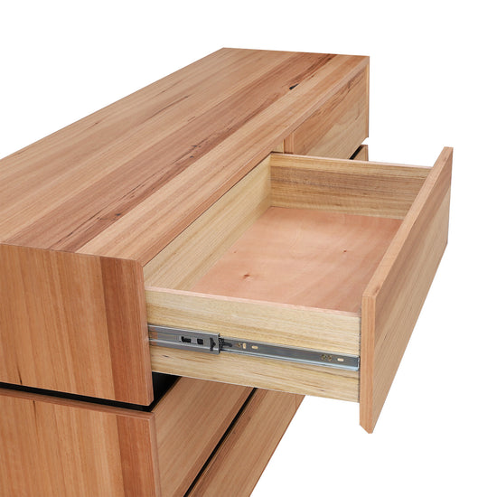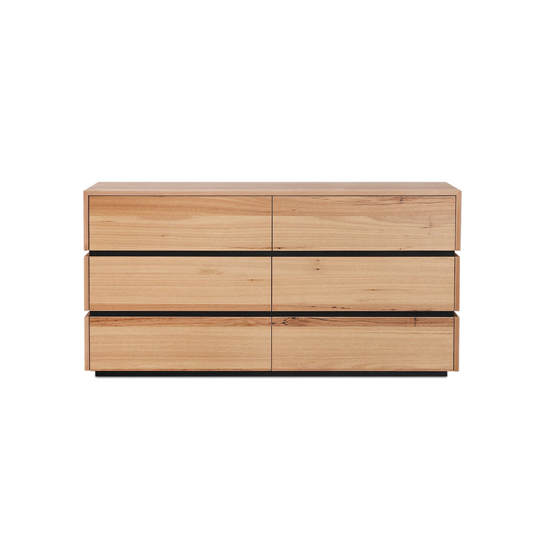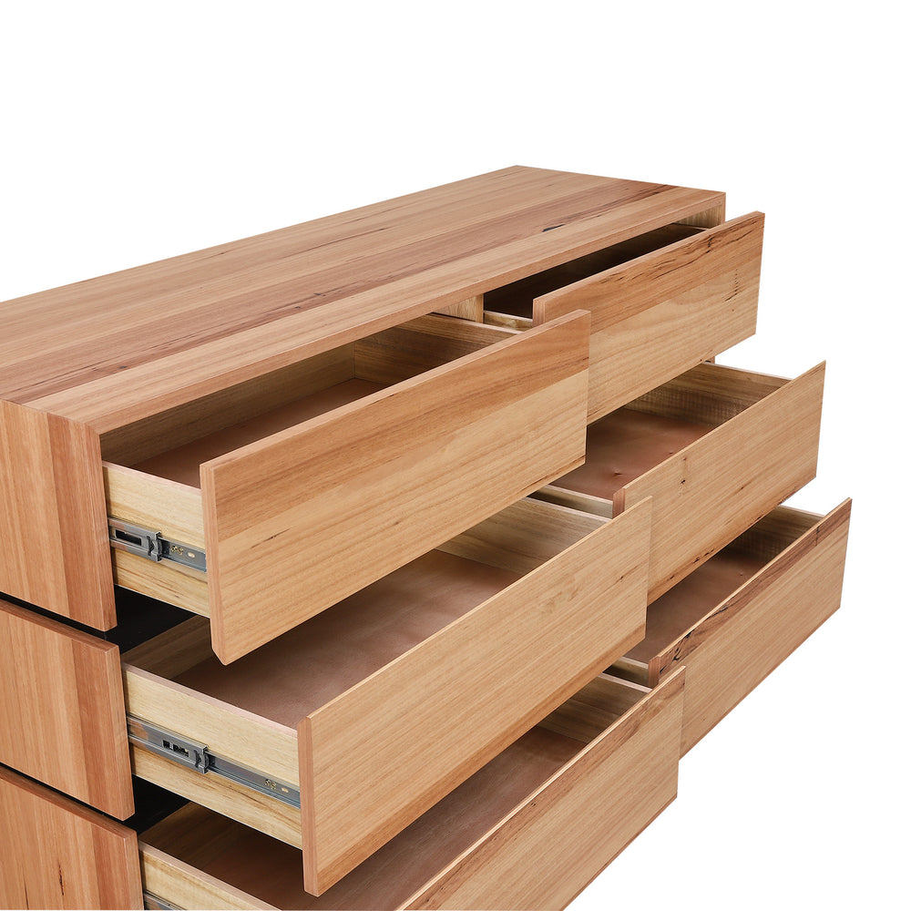 Crafted with a premium blackbutt wood veneer, this 6 drawer dresser offers a warm, modern aesthetic that complements any décor. Designed for both style and practicality, it features a spacious tabletop and storage options to keep your essentials within reach.