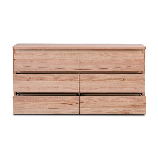 Enhance your bedroom with the Tasmania Oak 6-Drawer Bedroom Dresser, where contemporary design meets practical storage solutions for a stylish and organized space. This contemporary elegance of the Tasmania Oak 6-Drawer Bedroom Dresser meticulously crafted from premium Tasmanian Oak.