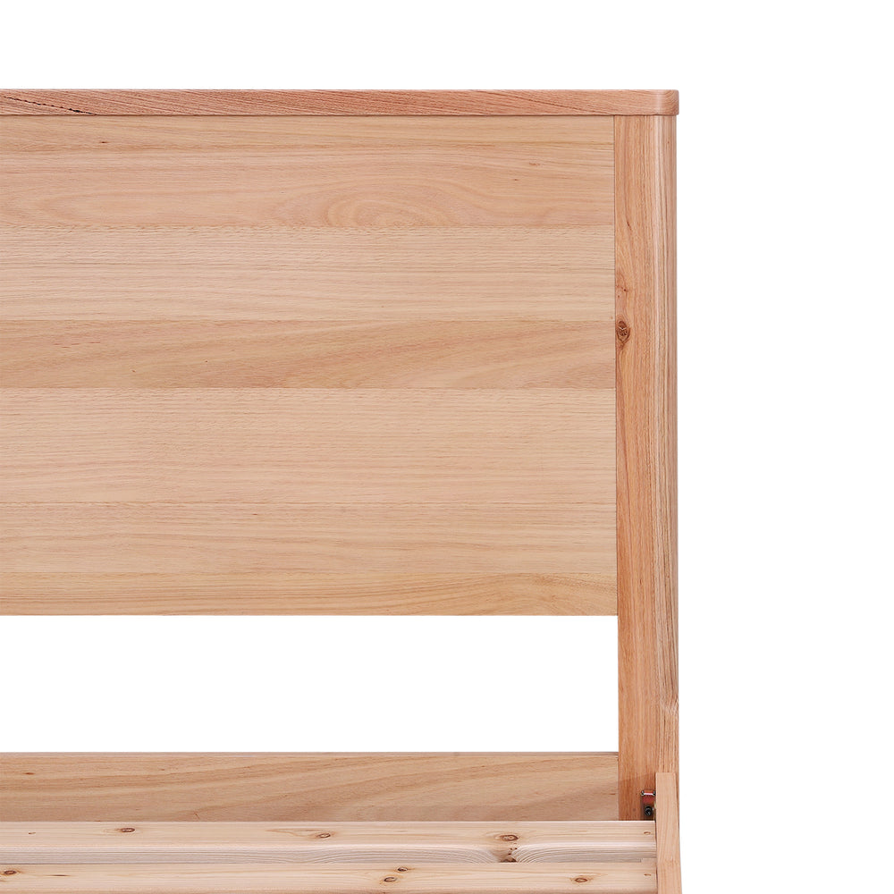 Elevate your bedroom with the refined elegance of the Tasmania Oak Queen Bed. Crafted from high-quality Tasmanian Oak, this bed features a light wooden finish that exudes natural beauty and warmth. The smooth, minimalist design is complemented by the rich, intricate grain patterns of the oak, creating a serene and inviting atmosphere. Its clean lines and timeless aesthetic make it a versatile piece that fits seamlessly with a variety of decor styles, from modern to classic. Transform your bedroom into a tranquil retreat with this exquisite bed, where craftsmanship and style meet to provide you with the perfect night's sleep.