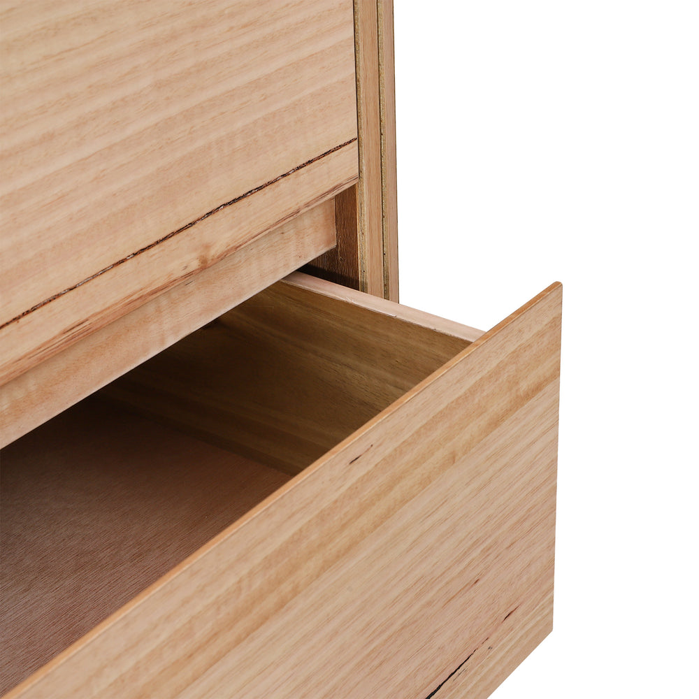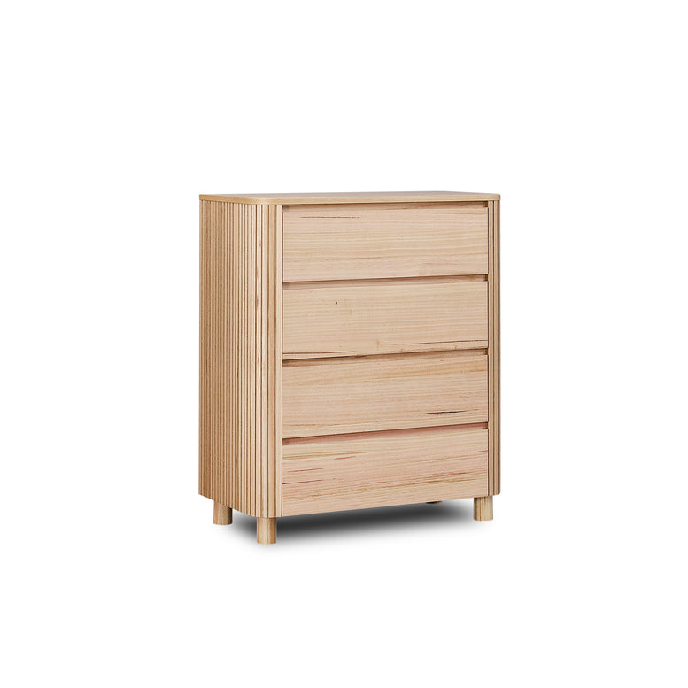 With its sleek lines and finely grooved edges, this tallboy offers both beauty and functionality, while the natural grain adds warmth and character.Ample storage to keep your room clutter-free.